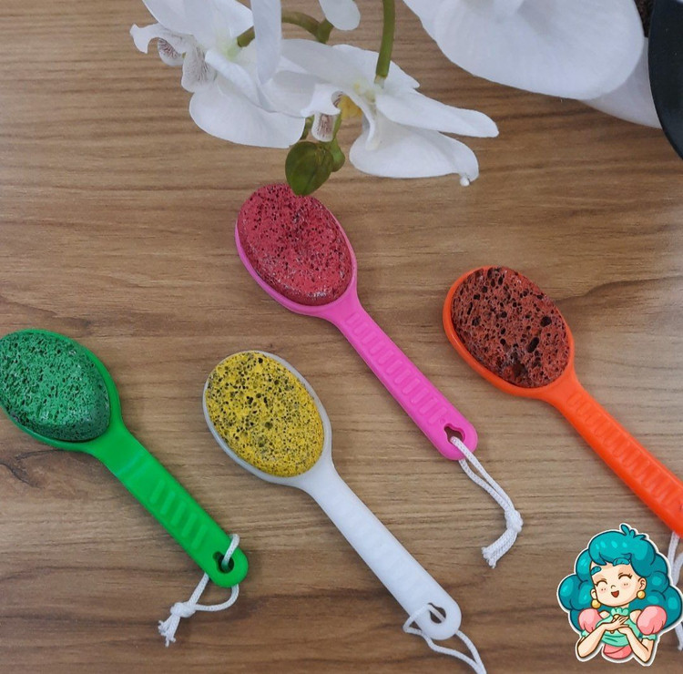 برطرف کردن خستگی و ..سنگ پا دسته دار عروس ظاهری شبیه به شانه دارد. دارای بدنه ای از جنس پلاستیک مقاوم و با کیفیت در رنگ بندی زیبا می باشد که دارای دستگیره و سری است که درون آن سنگ پایی قرار داده اند. انتهای دسته ی سنگ پا حفره ای وجود دارد که با استفاده از آن می توانید سنگ پا را از گیره های داخل حمام آویزان کنید. با توجه به دستگیره ای که دارد زمان استفاده می توانید آن را در دست بگیرید و با ان کف پایتان را تمیز کنید. تمام قسمت های سنگ پا کیفیت بالایی دارد و با توجه به شکل ظاهری زیبایی که دارد می